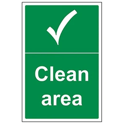 Helps to fulfil legal obligations to inform of the direction in which safety can be reached as per Health and Safety (Safety Signs & Signals) Regulations 1996 Conforms to EN ISO 7010:2012 by featuring a green background with a white pictogram or text positioned centrally Portrait Orientation. Sign reads "Clean Area" Highly durable 1mm plastic material and screen printed message will stand the test of time Sign measures 200 x 300mm.