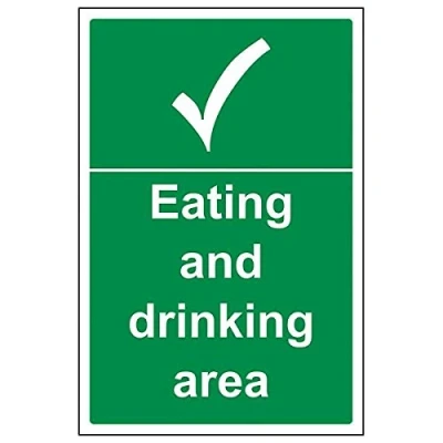 Helps to fulfil legal obligations to inform of the direction in which safety can be reached as per Health and Safety (Safety Signs & Signals) Regulations 1996 Conforms to EN ISO 7010:2012 by featuring a green background with a white pictogram or text positioned centrally Portrait Orientation. Sign reads "Eating and Drinking Area" Highly durable 1mm plastic material and screen printed message will stand the test of time Sign measures 200 x 300mm.