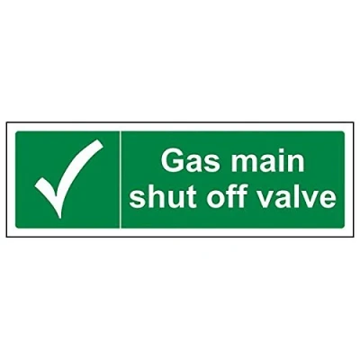Helps to fulfil legal obligations to inform of the direction in which safety can be reached as per Health and Safety (Safety Signs & Signals) Regulations 1996 Conforms to EN ISO 7010:2012 by featuring a green background with a white pictogram or text positioned centrally Landscape Orientation. Sign reads "Gas Main Shut Off Valve" Highly durable 1mm plastic material and screen printed message will stand the test of time Sign measures 300 x 100mm.