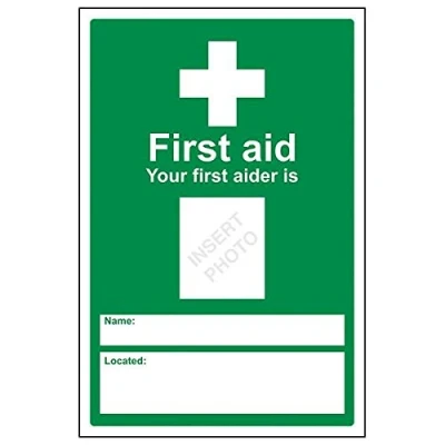 Helps to fulfil obligations to inform of where first aid supplies are kept as per First Aid At Work Regulations, as well as Health and Safety (Safety Signs & Signals) Regulations 1996 Conforms to EN ISO 7010:2012 Portrait Orientation. Sign reads "First Aid. Your First Aider Is" Highly durable 1mm plastic material and screen printed message will stand the test of time Sign measures 200 x 300mm.