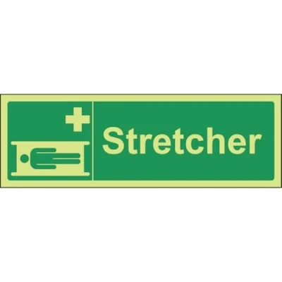 Helps to fulfil obligations to inform of where first aid supplies are kept as per First Aid At Work Regulations, as well as Health and Safety (Safety Signs & Signals) Regulations 1996 Conforms to EN ISO 7010:2012 Landscape Orientation. Sign reads "Stretcher" Highly durable Glow In The Dark 1mm plastic material and screen printed message will stand the test of time Sign measures 300 x 100mm.