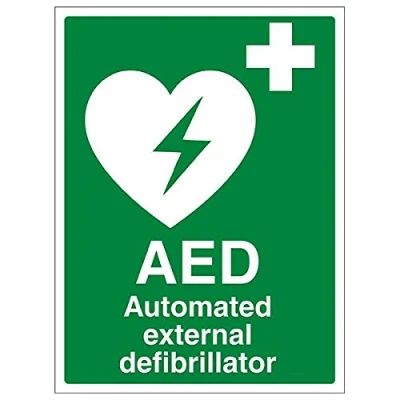 Helps to fulfil obligations to inform of where first aid supplies are kept as per First Aid At Work Regulations, as well as Health and Safety (Safety Signs & Signals) Regulations 1996 Conforms to EN ISO 7010:2012 Portrait Orientation. Sign reads "AED Automated External Defibrillator" Highly durable Self Adhesive Vinyl material and screen printed message will stand the test of time Sign measures 300 x 400mm. Self Adhesive material will adhere securely to most surfaces