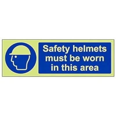 Helps to fulfil legal obligations to remind staff and visitors to wear the appropriate PPE when required to ensure personal safety as per Health and Safety (Safety Signs & Signals) Regulations 1996 Conforms to EN ISO 7010:2012 - Mandatory Signs feature a round symbol with a blue background of at least 50% of the total sign area, with a white pictogram and text Landscape Orientation. Sign reads "Safety Helmets Must Be Worn In This Area" Highly durable Glow In The Dark 1mm plastic material and screen printed message will stand the test of time Sign measures 300 x 100mm.