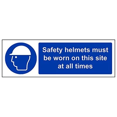 Helps to fulfil legal obligations to remind staff and visitors to wear the appropriate PPE when required to ensure personal safety as per Health and Safety (Safety Signs & Signals) Regulations 1996 Conforms to EN ISO 7010:2012 - Mandatory Signs feature a round symbol with a blue background of at least 50% of the total sign area, with a white pictogram and text Landscape Orientation. Sign reads "Safety Helmets Must Be Worn On This Site At All Times" Highly durable Self Adhesive Vinyl material and screen printed message will stand the test of time Sign measures 300 x 100mm. Self Adhesive material will adhere securely to most surfaces