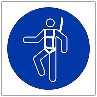 Helps to fulfil legal obligations to remind staff and visitors to wear the appropriate PPE when required to ensure personal safety as per Health and Safety (Safety Signs & Signals) Regulations 1996 Conforms to EN ISO 7010:2012 - Mandatory Signs feature a round symbol with a blue background of at least 50% of the total sign area, with a white pictogram and text Square Orientation. Sign features ISO compliant Safety Harness Logo Highly durable Self Adhesive Vinyl material and screen printed message will stand the test of time Sign measures 100 x 100mm. Self Adhesive material will adhere securely to most surfaces