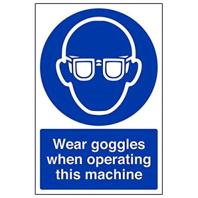 Helps to fulfil legal obligations to remind staff and visitors to wear the appropriate PPE when required to ensure personal safety as per Health and Safety (Safety Signs & Signals) Regulations 1996 Conforms to EN ISO 7010:2012 - Mandatory Signs feature a round symbol with a blue background of at least 50% of the total sign area, with a white pictogram and text Portrait Orientation. Sign reads "Wear Goggles When Operating This Machine" Highly durable Self Adhesive Vinyl material and screen printed message will stand the test of time Sign measures 200 x 300mm. Self Adhesive material will adhere securely to most surfaces