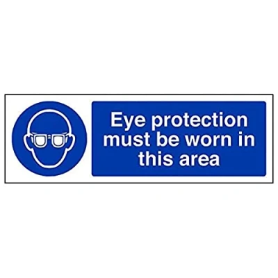Helps to fulfil legal obligations to remind staff and visitors to wear the appropriate PPE when required to ensure personal safety as per Health and Safety (Safety Signs & Signals) Regulations 1996 Conforms to EN ISO 7010:2012 - Mandatory Signs feature a round symbol with a blue background of at least 50% of the total sign area, with a white pictogram and text Landscape Orientation. Sign reads "Eye Protection Must Be Worn In This Area" Highly durable Self Adhesive Vinyl material and screen printed message will stand the test of time Sign measures 300 x 100mm. Self Adhesive material will adhere securely to most surfaces