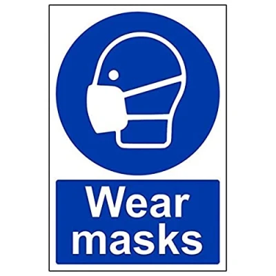 Helps to fulfil legal obligations to remind staff and visitors to wear the appropriate PPE when required to ensure personal safety as per Health and Safety (Safety Signs & Signals) Regulations 1996 Conforms to EN ISO 7010:2012 - Mandatory Signs feature a round symbol with a blue background of at least 50% of the total sign area, with a white pictogram and text Portrait Orientation. Sign reads "Wear Masks" Highly durable 1mm plastic material and screen printed message will stand the test of time Sign measures 200 x 300mm.