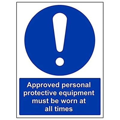 Helps to fulfil legal obligations to remind staff and visitors to wear the appropriate PPE when required to ensure personal safety as per Health and Safety (Safety Signs & Signals) Regulations 1996 Conforms to EN ISO 7010:2012 - Mandatory Signs feature a round symbol with a blue background of at least 50% of the total sign area, with a white pictogram and text Portrait Orientation. Sign reads "Approved Personal Protective Equipment Must Be Worn At All Times" Highly durable 1mm plastic material and screen printed message will stand the test of time Sign measures 300 x 400mm.