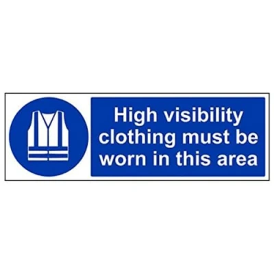 Helps to fulfil legal obligations to remind staff and visitors to wear the appropriate PPE when required to ensure personal safety as per Health and Safety (Safety Signs & Signals) Regulations 1996 Conforms to EN ISO 7010:2012 - Mandatory Signs feature a round symbol with a blue background of at least 50% of the total sign area, with a white pictogram and text Landscape Orientation. Sign reads "High Visibility Clothing Must Be Worn In This Area" Highly durable Self Adhesive Vinyl material and screen printed message will stand the test of time Sign measures 600 x 200mm. Self Adhesive material will adhere securely to most surfaces