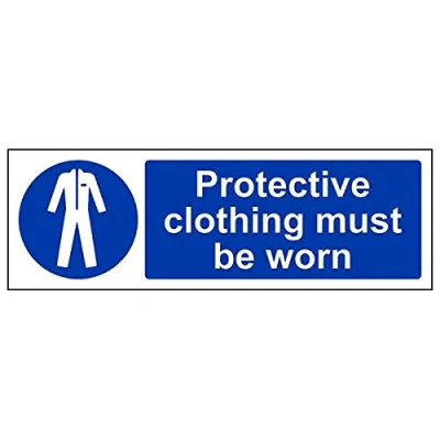 Helps to fulfil legal obligations to remind staff and visitors to wear the appropriate PPE when required to ensure personal safety as per Health and Safety (Safety Signs & Signals) Regulations 1996 Conforms to EN ISO 7010:2012 - Mandatory Signs feature a round symbol with a blue background of at least 50% of the total sign area, with a white pictogram and text Landscape Orientation. Sign reads "Protective Clothing Must Be Worn" Highly durable Self Adhesive Vinyl material and screen printed message will stand the test of time Sign measures 300 x 100mm. Self Adhesive material will adhere securely to most surfaces