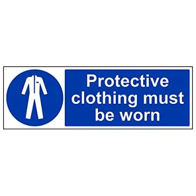 Helps to fulfil legal obligations to remind staff and visitors to wear the appropriate PPE when required to ensure personal safety as per Health and Safety (Safety Signs & Signals) Regulations 1996 Conforms to EN ISO 7010:2012 - Mandatory Signs feature a round symbol with a blue background of at least 50% of the total sign area, with a white pictogram and text Landscape Orientation. Sign reads "Protective Clothing Must Be Worn" Highly durable Self Adhesive Vinyl material and screen printed message will stand the test of time Sign measures 600 x 200mm. Self Adhesive material will adhere securely to most surfaces