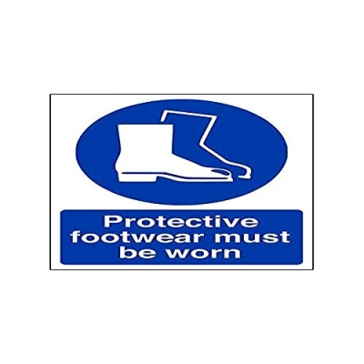 Helps to fulfil legal obligations to remind staff and visitors to wear the appropriate PPE when required to ensure personal safety as per Health and Safety (Safety Signs & Signals) Regulations 1996 Conforms to EN ISO 7010:2012 - Mandatory Signs feature a round symbol with a blue background of at least 50% of the total sign area, with a white pictogram and text Portrait Orientation. Sign reads "Protective Footwear Must Be Worn" Highly durable 1mm plastic material and screen printed message will stand the test of time Sign measures 150 x 200mm.