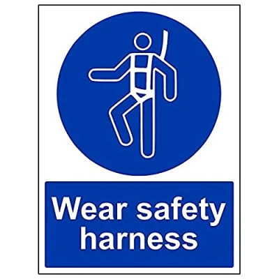 Helps to fulfil legal obligations to remind staff and visitors to wear the appropriate PPE when required to ensure personal safety as per Health and Safety (Safety Signs & Signals) Regulations 1996 Conforms to EN ISO 7010:2012 - Mandatory Signs feature a round symbol with a blue background of at least 50% of the total sign area, with a white pictogram and text Portrait Orientation. Sign reads "Wear Safety Harness" Highly durable 1mm plastic material and screen printed message will stand the test of time Sign measures 300 x 400mm.