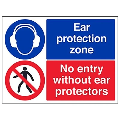 Vsafety 41102BF R "Ear Protection Zone/No Entry Without…" Sign, 400 mm x 300 (Pack of 3)