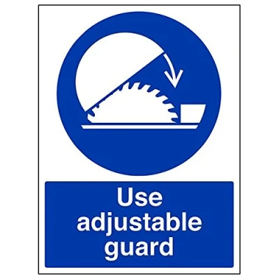 Helps to fulfil legal obligations to advise employees and visitors of specific actions and behaviour which must be adhered to in order to ensure personal safety as per Health and Safety (Safety Signs & Signals) Regulations 1996 Conforms to EN ISO 7010:2012 - Mandatory Signs feature a round symbol with a blue background of at least 50% of the total sign area, with a white pictogram and text Portrait Orientation. Sign reads "Use Adjustable Guard" Highly durable 1mm plastic material and screen printed message will stand the test of time Sign measures 300 x 400mm.
