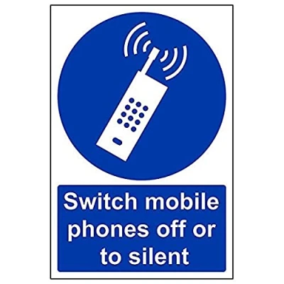 Helps to fulfil legal obligations to advise employees and visitors of specific actions and behaviour which must be adhered to in order to ensure personal safety as per Health and Safety (Safety Signs & Signals) Regulations 1996 Conforms to EN ISO 7010:2012 - Mandatory Signs feature a round symbol with a blue background of at least 50% of the total sign area, with a white pictogram and text Portrait Orientation. Sign reads "Switch Mobile Phones Off or To Silent" Highly durable 1mm plastic material and screen printed message will stand the test of time Sign measures 200 x 300mm.
