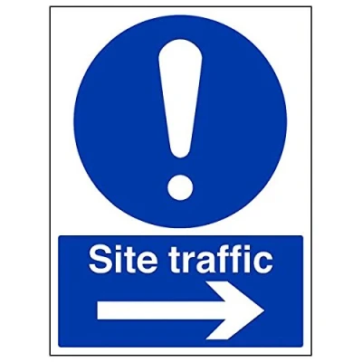 Helps to fulfil legal obligations to advise employees and visitors of specific actions and behaviour which must be adhered to in order to ensure personal safety as per Health and Safety (Safety Signs & Signals) Regulations 1996 Conforms to EN ISO 7010:2012 - Mandatory Signs feature a round symbol with a blue background of at least 50% of the total sign area, with a white pictogram and text Portrait Orientation. Sign reads "Site Traffic" Highly durable Self Adhesive Vinyl material and screen printed message will stand the test of time Sign measures 300 x 400mm. Self Adhesive material will adhere securely to most surfaces