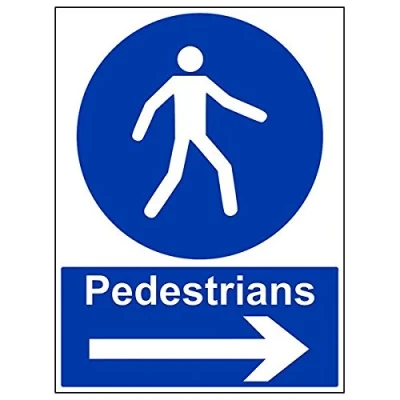 Helps to fulfil legal obligations to advise employees and visitors of specific actions and behaviour which must be adhered to in order to ensure personal safety as per Health and Safety (Safety Signs & Signals) Regulations 1996 Conforms to EN ISO 7010:2012 - Mandatory Signs feature a round symbol with a blue background of at least 50% of the total sign area, with a white pictogram and text Portrait Orientation. Sign reads "Pedestrians" Highly durable 1mm plastic material and screen printed message will stand the test of time Sign measures 450 x 600mm.