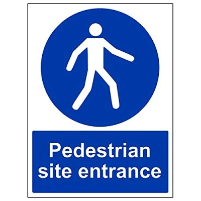 Helps to fulfil legal obligations to advise employees and visitors of specific actions and behaviour which must be adhered to in order to ensure personal safety as per Health and Safety (Safety Signs & Signals) Regulations 1996 Conforms to EN ISO 7010:2012 - Mandatory Signs feature a round symbol with a blue background of at least 50% of the total sign area, with a white pictogram and text Portrait Orientation. Sign reads "Pedestrian Site Entrance" Highly durable 1mm plastic material and screen printed message will stand the test of time Sign measures 300 x 400mm.