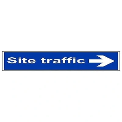 Helps to fulfil legal obligations to advise employees and visitors of specific actions and behaviour which must be adhered to in order to ensure personal safety as per Health and Safety (Safety Signs & Signals) Regulations 1996 Conforms to EN ISO 7010:2012 - Mandatory Signs feature a round symbol with a blue background of at least 50% of the total sign area, with a white pictogram and text Landscape Orientation. Sign reads "Site Traffic" Highly durable Self Adhesive Vinyl material and screen printed message will stand the test of time Sign measures 600 x 200mm. Self Adhesive material will adhere securely to most surfaces