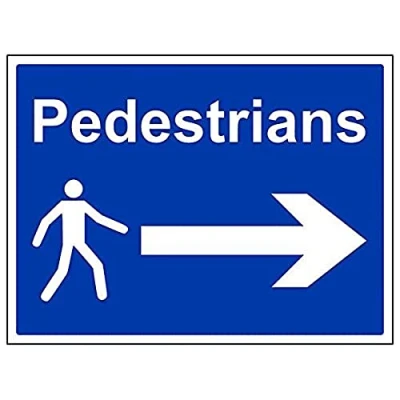 Helps to fulfil legal obligations to advise employees and visitors of specific actions and behaviour which must be adhered to in order to ensure personal safety as per Health and Safety (Safety Signs & Signals) Regulations 1996 Conforms to EN ISO 7010:2012 - Mandatory Signs feature a round symbol with a blue background of at least 50% of the total sign area, with a white pictogram and text Landscape Orientation. Sign reads "Pedestrians" Highly durable 1mm plastic material and screen printed message will stand the test of time Sign measures 400 x 300mm.