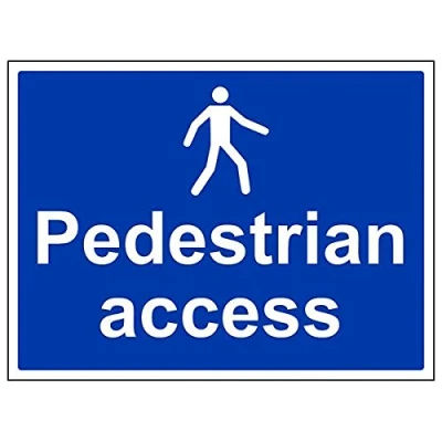 Helps to fulfil legal obligations to advise employees and visitors of specific actions and behaviour which must be adhered to in order to ensure personal safety as per Health and Safety (Safety Signs & Signals) Regulations 1996 Conforms to EN ISO 7010:2012 - Mandatory Signs feature a round symbol with a blue background of at least 50% of the total sign area, with a white pictogram and text Landscape Orientation. Sign reads "Pedestrian Access" Highly durable Self Adhesive Vinyl material and screen printed message will stand the test of time Sign measures 400 x 300mm. Self Adhesive material will adhere securely to most surfaces