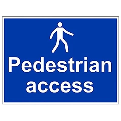 Helps to fulfil legal obligations to advise employees and visitors of specific actions and behaviour which must be adhered to in order to ensure personal safety as per Health and Safety (Safety Signs & Signals) Regulations 1996 Conforms to EN ISO 7010:2012 - Mandatory Signs feature a round symbol with a blue background of at least 50% of the total sign area, with a white pictogram and text Landscape Orientation. Sign reads "Pedestrian Access" Highly durable 1mm plastic material and screen printed message will stand the test of time Sign measures 600 x 450mm.