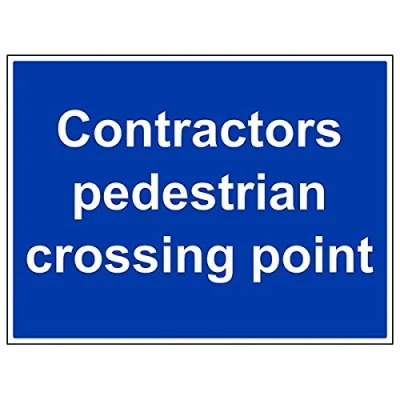 Helps to fulfil legal obligations to advise employees and visitors of specific actions and behaviour which must be adhered to in order to ensure personal safety as per Health and Safety (Safety Signs & Signals) Regulations 1996 Conforms to EN ISO 7010:2012 - Mandatory Signs feature a round symbol with a blue background of at least 50% of the total sign area, with a white pictogram and text Landscape Orientation. Sign reads "Contractors Pedestrian Crossing Point" Highly durable 1mm plastic material and screen printed message will stand the test of time Sign measures 600 x 450mm.