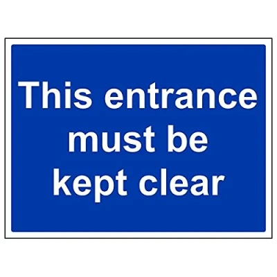 Helps to fulfil legal obligations to advise employees and visitors of specific actions and behaviour which must be adhered to in order to ensure personal safety as per Health and Safety (Safety Signs & Signals) Regulations 1996 Conforms to EN ISO 7010:2012 - Mandatory Signs feature a round symbol with a blue background of at least 50% of the total sign area, with a white pictogram and text Landscape Orientation. Sign reads "This Entrance Must Be Kept Clear" Highly durable Self Adhesive Vinyl material and screen printed message will stand the test of time Sign measures 400 x 300mm. Self Adhesive material will adhere securely to most surfaces