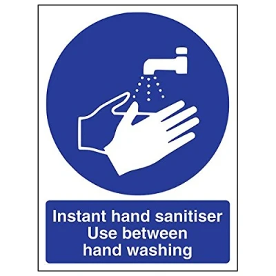 Helps to fulfil legal obligations to advise employees and visitors of specific actions and behaviour which must be adhered to in order to ensure personal safety as per Health and Safety (Safety Signs & Signals) Regulations 1996 Conforms to EN ISO 7010:2012 - Mandatory Signs feature a round symbol with a blue background of at least 50% of the total sign area, with a white pictogram and text Portrait Orientation. Sign reads "Instant Hand Sanitiser. Use Between Hand Washing" Highly durable 1mm plastic material and screen printed message will stand the test of time Sign measures 150 x 200mm.