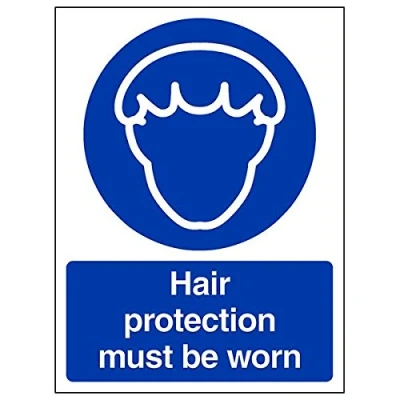Helps to fulfil legal obligations to remind staff and visitors to wear the appropriate PPE in catering environments to ensure personal safety and maintain hygiene levels Conforms to EN ISO 7010:2012 - Mandatory Signs feature a round symbol with a blue background of at least 50% of the total sign area, with a white pictogram and text Portrait Orientation. Sign reads "Hair Protection Must Be Worn" Highly durable 1mm plastic material and screen printed message will stand the test of time Sign measures 150 x 200mm.