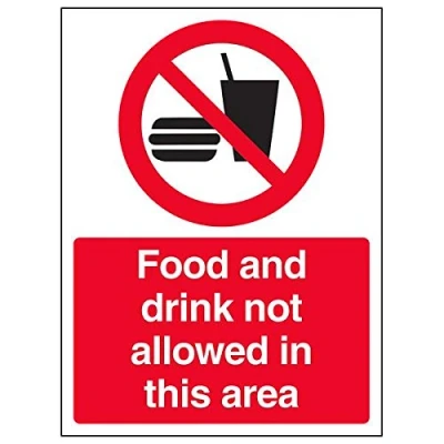 Helps to fulfil legal obligations to remind staff and visitors to wear the appropriate PPE in catering environments to ensure personal safety and maintain hygiene levels Conforms to EN ISO 7010:2012 - Mandatory Signs feature a round symbol with a blue background of at least 50% of the total sign area, with a white pictogram and text Portrait Orientation. Sign reads "Food And Drink Not Allowed In This Area" Highly durable 1mm plastic material and screen printed message will stand the test of time Sign measures 150 x 200mm.