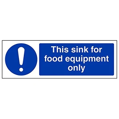 Helps to fulfil legal obligations to remind staff and visitors to wear the appropriate PPE in catering environments to ensure personal safety and maintain hygiene levels Conforms to EN ISO 7010:2012 - Mandatory Signs feature a round symbol with a blue background of at least 50% of the total sign area, with a white pictogram and text Landscape Orientation. Sign reads "This Sink For Food Equipment Only" Highly durable 1mm plastic material and screen printed message will stand the test of time Sign measures 300 x 100mm.