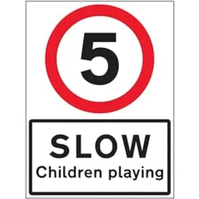 VSafety 5 MPH Children Playing 600x800mm 3mm Aluminium Composite With Fixing Channel Safety Sign