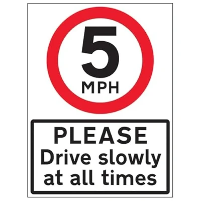 VSafety 5 MPH Please Drive Slowly 600x800mm Class RA1 Reflective 3mm Aluminium Composite With Anti Graffiti Coating Safety Sign