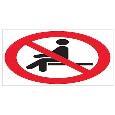 Clearly displays prohibited and potentially dangerous actions which employees and visitors must avoid in the interests of health and safety as per Health and Safety (Safety Signs & Signals) Regulations 1996 Conforms to EN ISO 7010:2012 - Prohibition signs feature a red circular symbol of at least 35% of the total sign area, on a white background, with a black pictogram Square Orientation. Sign features ISO compliant No Sitting Logo Highly durable 1mm plastic material and screen printed message will stand the test of time Sign measures 400 x 400mm.