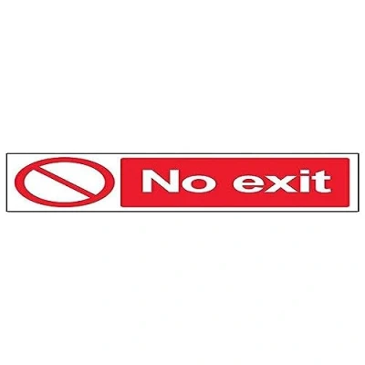 Clearly displays prohibited and potentially dangerous actions which employees and visitors must avoid in the interests of health and safety as per Health and Safety (Safety Signs & Signals) Regulations 1996 Conforms to EN ISO 7010:2012 - Prohibition signs feature a red circular symbol of at least 35% of the total sign area, on a white background, with a black pictogram Landscape Orientation. Sign reads "No Exit" Highly durable 1mm plastic material and screen printed message will stand the test of time Sign measures 300 x 100mm.