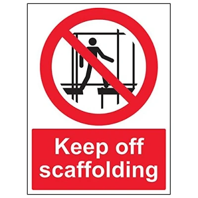 Clearly displays prohibited and potentially dangerous actions which employees and visitors must avoid in the interests of health and safety as per Health and Safety (Safety Signs & Signals) Regulations 1996 Conforms to EN ISO 7010:2012 - Prohibition signs feature a red circular symbol of at least 35% of the total sign area, on a white background, with a black pictogram Portrait Orientation. Sign reads "Keep Off Scaffolding" Highly durable 1mm plastic material and screen printed message will stand the test of time Sign measures 300 x 400mm.