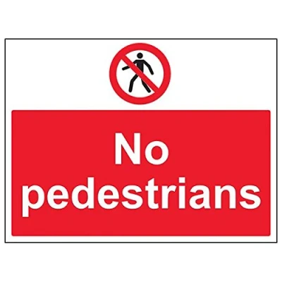 Clearly displays prohibited and potentially dangerous actions which employees and visitors must avoid in the interests of health and safety as per Health and Safety (Safety Signs & Signals) Regulations 1996 Conforms to EN ISO 7010:2012 - Prohibition signs feature a red circular symbol of at least 35% of the total sign area, on a white background, with a black pictogram Landscape Orientation. Sign reads "No Pedestrians" Highly durable Self Adhesive Vinyl material and screen printed message will stand the test of time Sign measures 400 x 300mm. Self Adhesive material will adhere securely to most surfaces