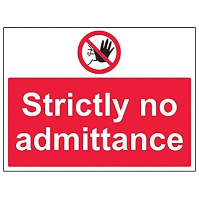 Clearly displays prohibited and potentially dangerous actions which employees and visitors must avoid in the interests of health and safety as per Health and Safety (Safety Signs & Signals) Regulations 1996 Conforms to EN ISO 7010:2012 - Prohibition signs feature a red circular symbol of at least 35% of the total sign area, on a white background, with a black pictogram Landscape Orientation. Sign reads "Strictly No Admittance" Highly durable Self Adhesive Vinyl material and screen printed message will stand the test of time Sign measures 400 x 300mm. Self Adhesive material will adhere securely to most surfaces
