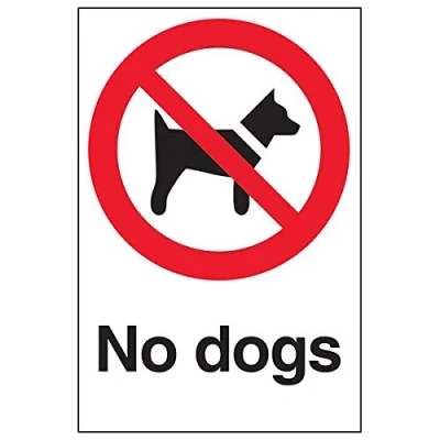 Clearly displays prohibited and potentially dangerous actions which employees and visitors must avoid in the interests of health and safety as per Health and Safety (Safety Signs & Signals) Regulations 1996 Conforms to EN ISO 7010:2012 - Prohibition signs feature a red circular symbol of at least 35% of the total sign area, on a white background, with a black pictogram Portrait Orientation. Sign reads "No Dogs" Highly durable 1mm plastic material and screen printed message will stand the test of time Sign measures 200 x 300mm.