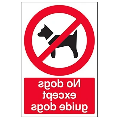 Clearly displays prohibited and potentially dangerous actions which employees and visitors must avoid in the interests of health and safety as per Health and Safety (Safety Signs & Signals) Regulations 1996 Conforms to EN ISO 7010:2012 - Prohibition signs feature a red circular symbol of at least 35% of the total sign area, on a white background, with a black pictogram Portrait Orientation. Sign reads "No Dogs Except Guide Dogs" Highly durable Window Sticker material and screen printed message will stand the test of time Sign measures 200 x 300mm. Self Adhesive material will adhere securely to most surfaces