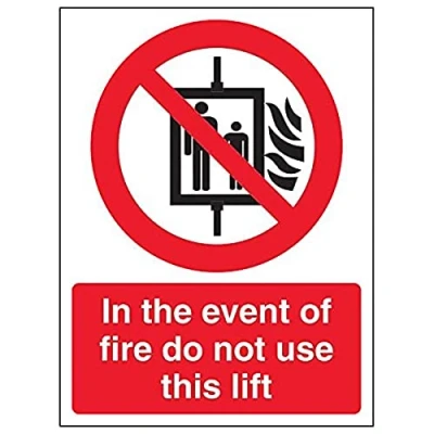 Clearly displays prohibited and potentially dangerous actions which employees and visitors must avoid in the interests of health and safety as per Health and Safety (Safety Signs & Signals) Regulations 1996 Conforms to EN ISO 7010:2012 - Prohibition signs feature a red circular symbol of at least 35% of the total sign area, on a white background, with a black pictogram Portrait Orientation. Sign reads "In The Event Of Fire Do Not Use This Lift" Highly durable 1mm plastic material and screen printed message will stand the test of time Sign measures 150 x 200mm.