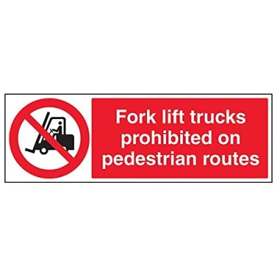 Clearly displays prohibited and potentially dangerous actions which employees and visitors must avoid in the interests of health and safety as per Health and Safety (Safety Signs & Signals) Regulations 1996 Conforms to EN ISO 7010:2012 - Prohibition signs feature a red circular symbol of at least 35% of the total sign area, on a white background, with a black pictogram Landscape Orientation. Sign reads "Fork Lift Trucks Prohibited On Pedestrian Routes" Highly durable 1mm plastic material and screen printed message will stand the test of time Sign measures 600 x 200mm.