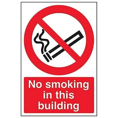 Clearly establishes areas where smoking is prohibited to employees and visitors. Complies with the Smoke-free (Signs) Regulations 2007 Conforms to EN ISO 7010:2012 - Prohibition signs feature a red circular symbol of at least 35% of the total sign area, on a white background, with a black pictogram Portrait Orientation. Sign reads "No Smoking In This Building" Highly durable 1mm plastic material and screen printed message will stand the test of time Sign measures 200 x 300mm.