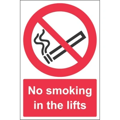 Clearly establishes areas where smoking is prohibited to employees and visitors. Complies with the Smoke-free (Signs) Regulations 2007 Conforms to EN ISO 7010:2012 - Prohibition signs feature a red circular symbol of at least 35% of the total sign area, on a white background, with a black pictogram Portrait Orientation. Sign reads "No Smoking In The Lifts" Highly durable 1mm plastic material and screen printed message will stand the test of time Sign measures 200 x 300mm.