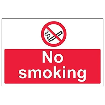 Clearly establishes areas where smoking is prohibited to employees and visitors. Complies with the Smoke-free (Signs) Regulations 2007 Conforms to EN ISO 7010:2012 - Prohibition signs feature a red circular symbol of at least 35% of the total sign area, on a white background, with a black pictogram Landscape Orientation. Sign reads "No Smoking" Highly durable 1mm plastic material and screen printed message will stand the test of time Sign measures 300 x 200mm.