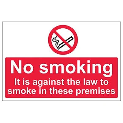 Clearly establishes areas where smoking is prohibited to employees and visitors. Complies with the Smoke-free (Signs) Regulations 2007 Conforms to EN ISO 7010:2012 - Prohibition signs feature a red circular symbol of at least 35% of the total sign area, on a white background, with a black pictogram Landscape Orientation. Sign reads "No Smoking. It Is Against The Law To Smoke In These Premises" Highly durable 1mm plastic material and screen printed message will stand the test of time Sign measures 300 x 200mm.