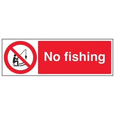 Clearly displays prohibited and potentially dangerous actions which employees and visitors must avoid in the interests of health and safety as per Health and Safety (Safety Signs & Signals) Regulations 1996 Conforms to EN ISO 7010:2012 - Prohibition signs feature a red circular symbol of at least 35% of the total sign area, on a white background, with a black pictogram Landscape Orientation. Sign reads "No Fishing" Highly durable Self Adhesive Vinyl material and screen printed message will stand the test of time Sign measures 450 x 150mm. Self Adhesive material will adhere securely to most surfaces